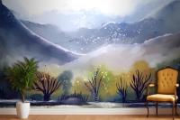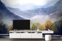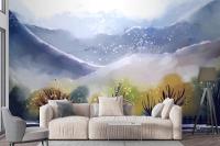 Watercolor Mountain Landscape Living Room Wallpaper Mural