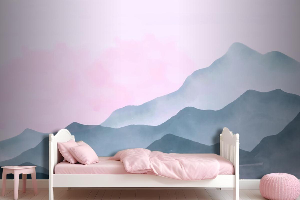 Watercolor Mountains Background With Pink Sky Wallpaper Mural