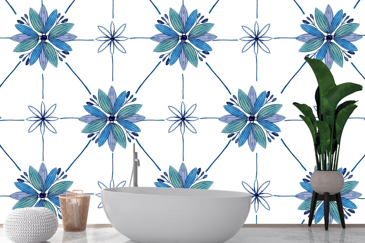 Watercolor Ornamental Flower Bathroom Wallpaper Mural