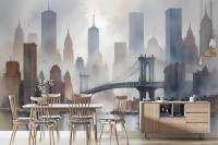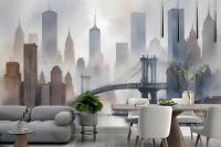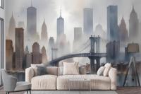 Watercolor Painting New York City Landscape Wallpaper Mural