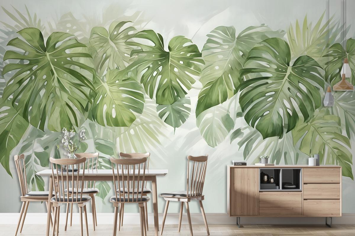 Watercolor Tropical Leaves Wallpaper Mural
