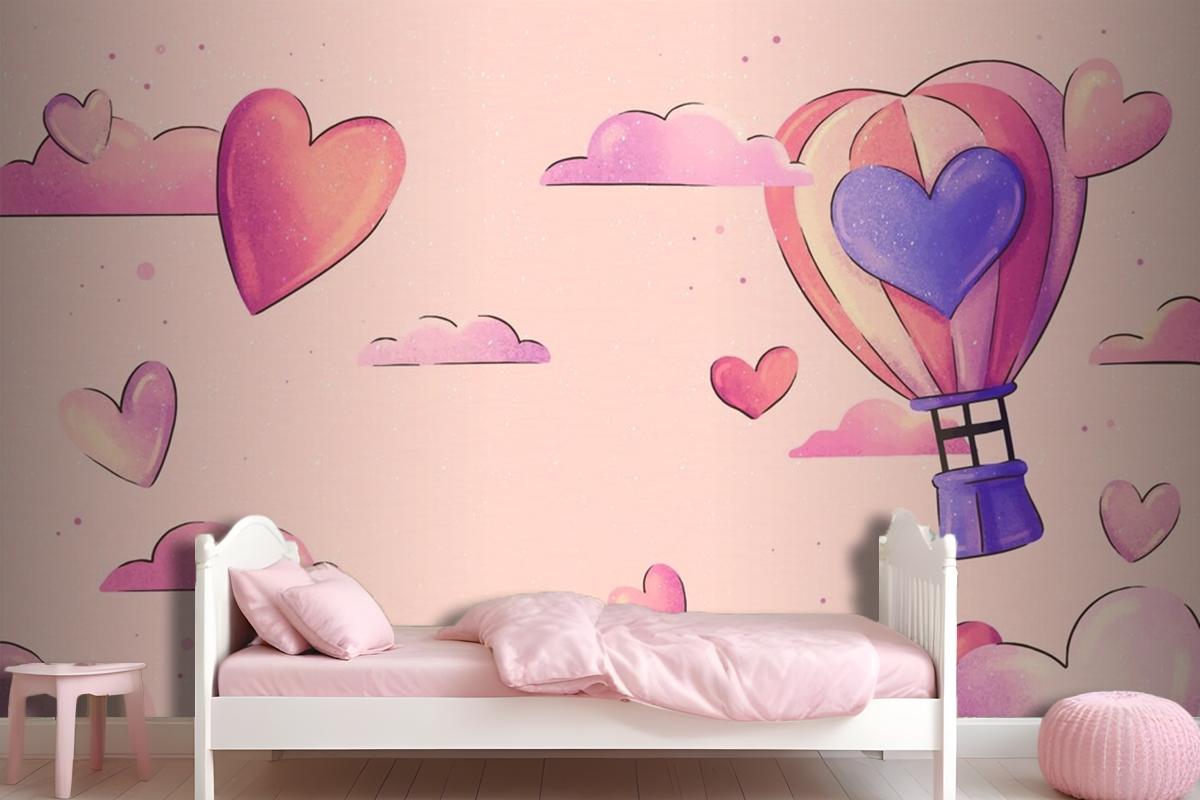 Watercolor Valentine'S Day Background Girl Wallpaper Mural