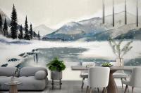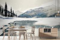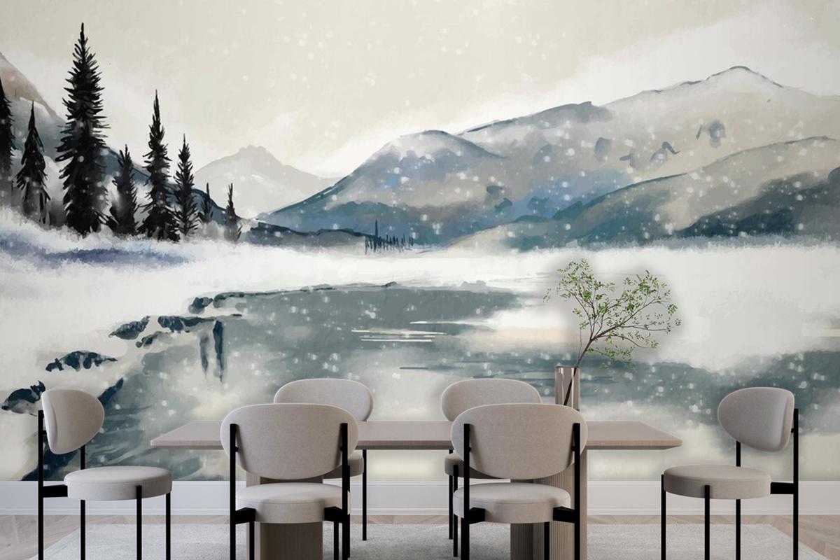 Watercolor Winter Landscape Dining Room Wallpaper Mural