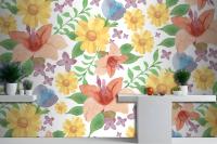 Watercolour Floral Background With Lilies Wallpaper Mural