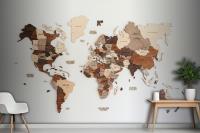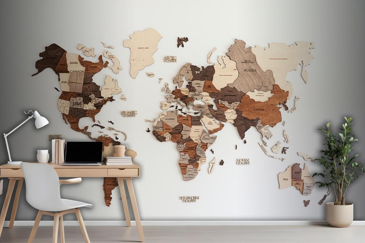 World Map Made Of Wood Crafts Wallpaper Mural